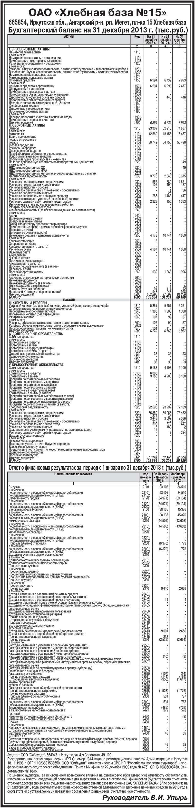 ОАО «Хлебная база №15». Бухгалтерский баланс на 31 декабря 2013г. (тыс.руб.)