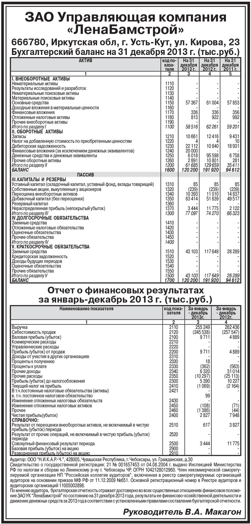 ЗАО Управляющая компания «ЛенаБамстрой». Бухгалтерский баланс на 31 декабря 2013г. (тыс.руб.)