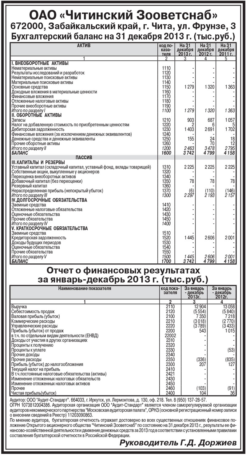 ОАО «Читинский Зооветснаб». Бухгалтерский баланс на 31 декабря 2013г. (тыс.руб.)