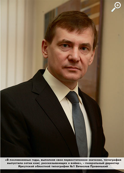 «Уже в послевоенные годы, выполняя свое первостепенное значение, Иркутская областная типография №1 выпустила сотни книг, рассказывающих о войне. Среди них издания ‘Сибиряки у стен Сталинграда’ с воспоминаниями и краткими сведениями о земляках – участниках Сталинградской битвы, ‘Солдаты Победы’, ‘Пока я помню, я живу…’ и многие другие», – продолжает экскурс в историю Вячеслав Правенький.