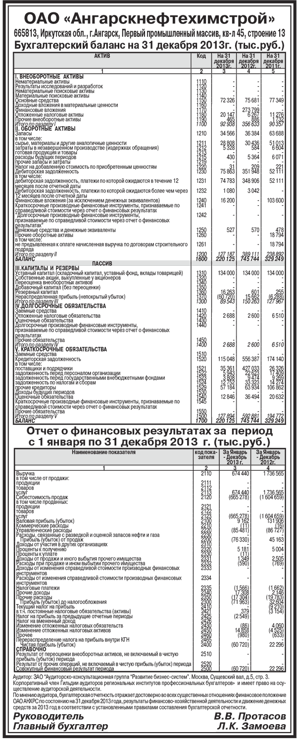 ОАО «Ангарскнефтехимстрой». Бухгалтерский баланс на 31 декабря 2013г. (тыс.руб.)