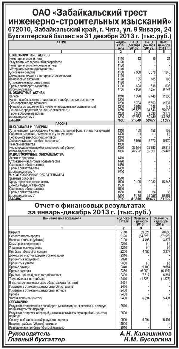 ОАО «Забайкальский трест инженерно-строительных изысканий». Бухгалтерский баланс на 31 декабря 2013 г. (тыс.руб.)