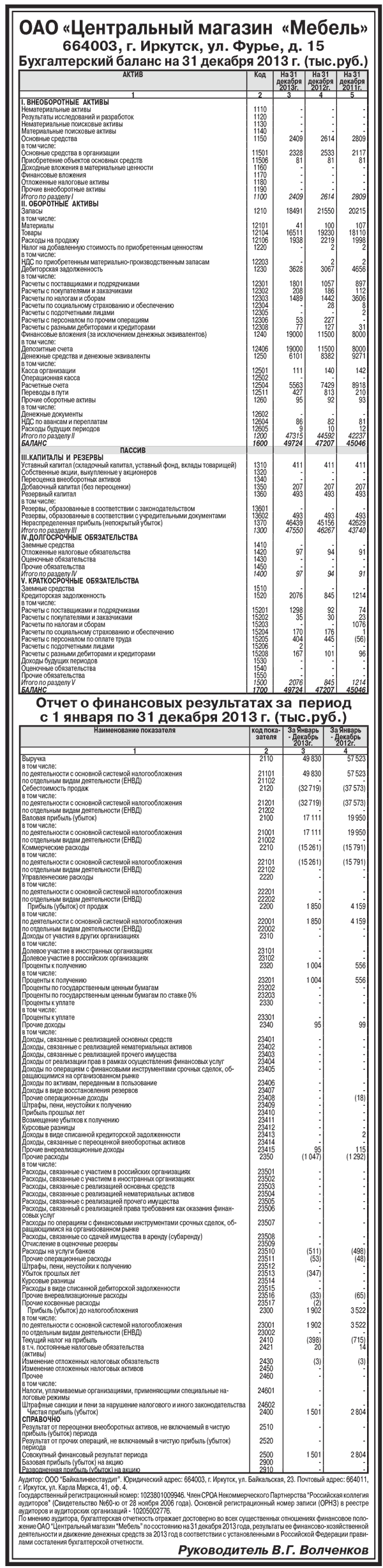 ОАО «Центральный магазин «Мебель». Бухгалтерский баланс на 31 декабря 2013 г. (тыс.руб.)