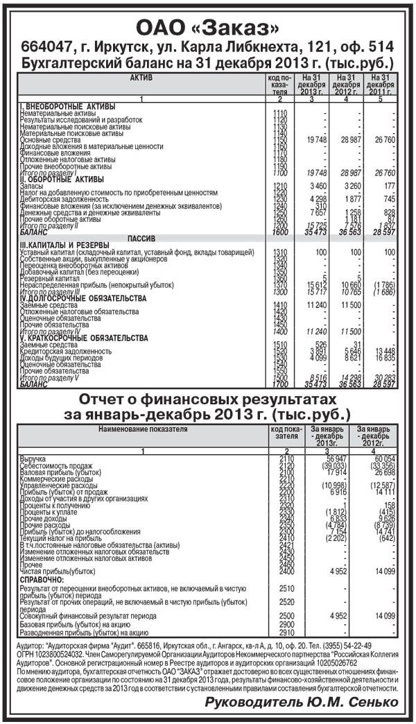 ОАО «Заказ». Бухгалтерский баланс на 31 декабря 2013 г. (тыс.руб.)
