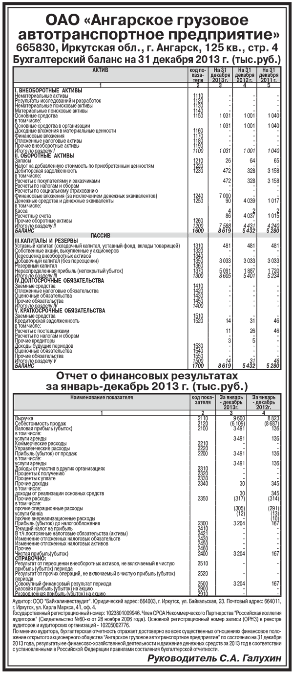 ОАО «Ангарское грузовое автотранспортное предприятие». Бухгалтерский баланс на 31 декабря 2013 г. (тыс.руб.)