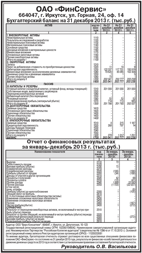 ОАО «ФинСервис». Бухгалтерский баланс на 31 декабря 2013 г. (тыс.руб.)