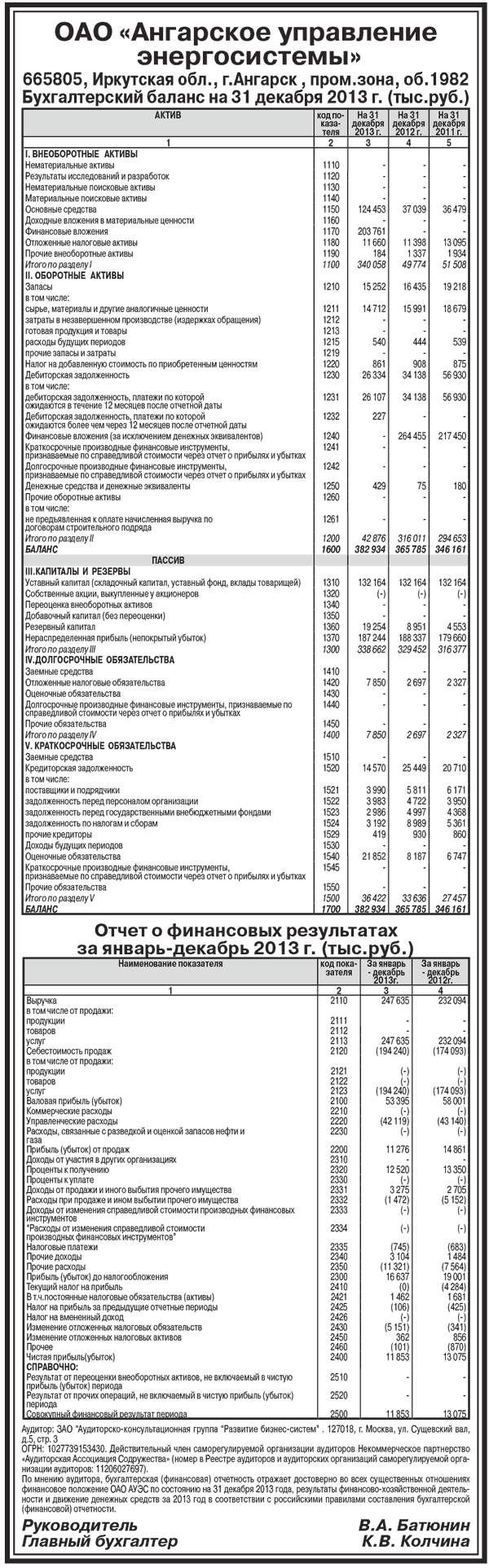ОАО «Ангарское управление энергосистемы». Бухгалтерский баланс на 31 декабря 2013 г. (тыс.руб.)