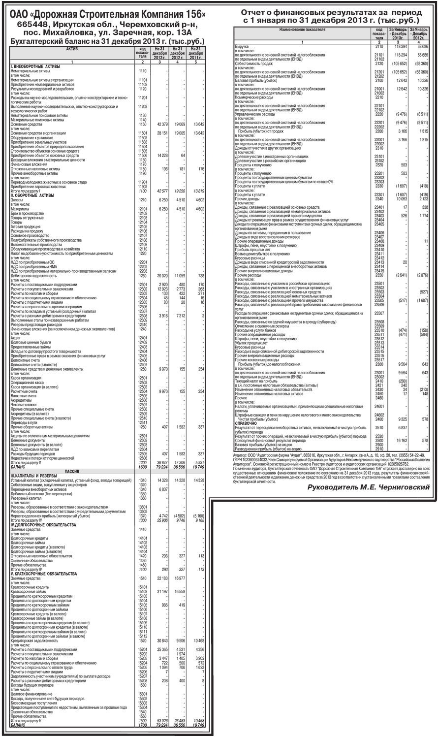 ОАО «Дорожная Строительная Компания 156». Бухгалтерский баланс на 31 декабря 2013 г. (тыс.руб.)