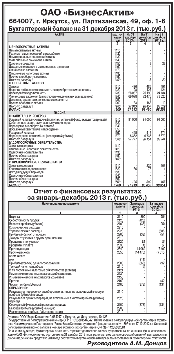 ОАО «БизнесАктив». Бухгалтерский баланс на 31 декабря 2013 г. (тыс.руб.)
