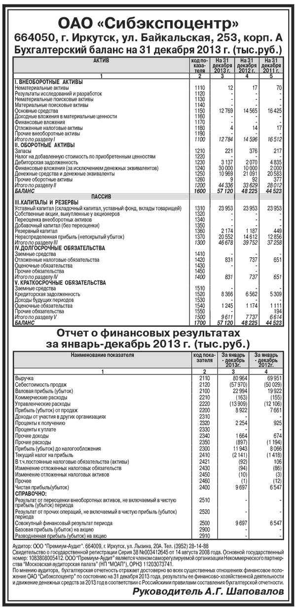 ОАО «Сибэкспоцентр». Бухгалтерский баланс на 31 декабря 2013 г. (тыс.руб.)