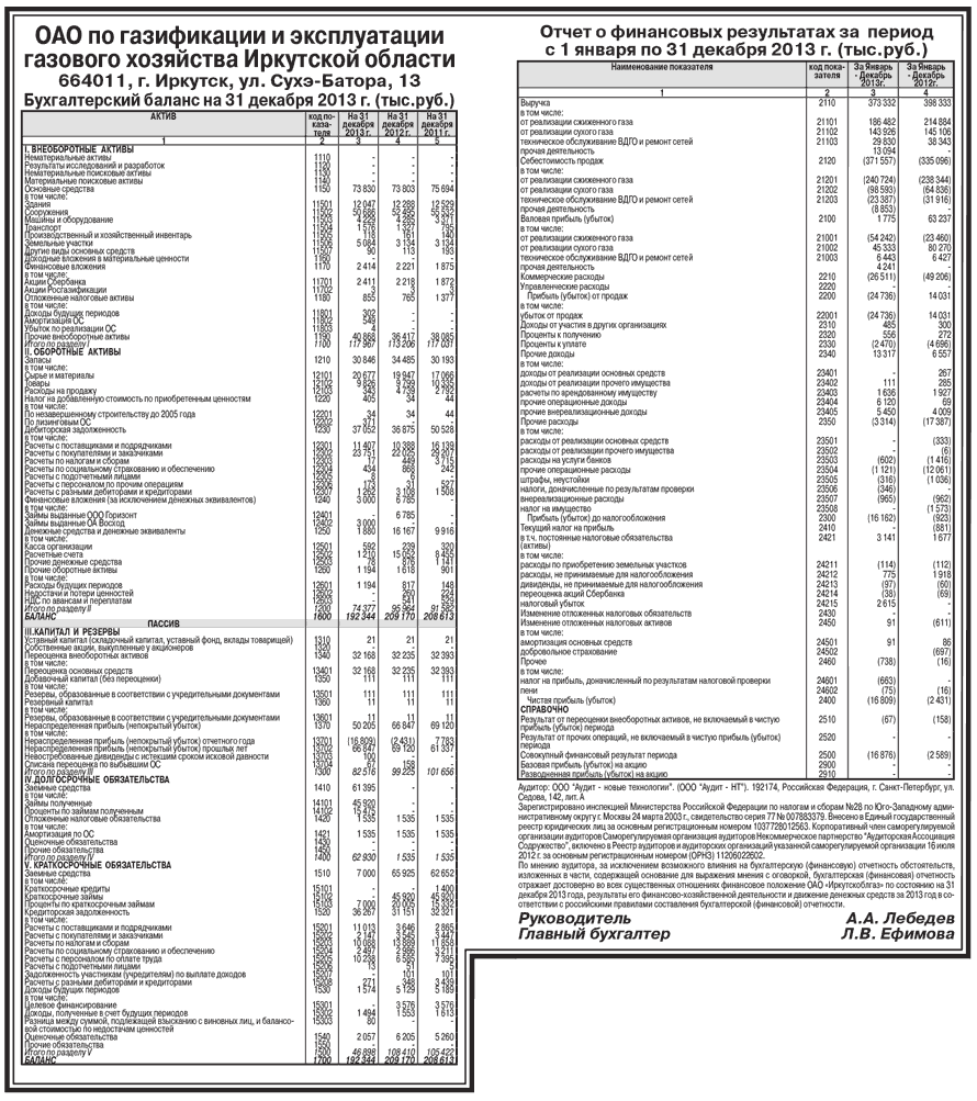 ОАО по газификации и эксплуатации газового хозяйства Иркутской области. Бухгалтерский баланс на 31 декабря 2013 г. (тыс.руб.)