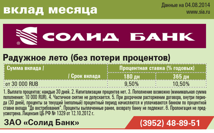 ЗАО «Солид банк». Вклад месяца