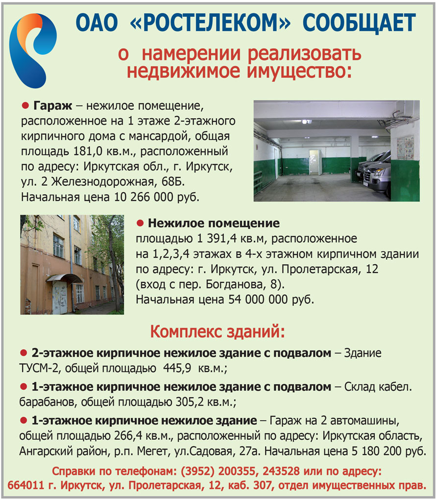ОАО «Ростелеком» сообщает о намерении реализовать недвижимое имущество