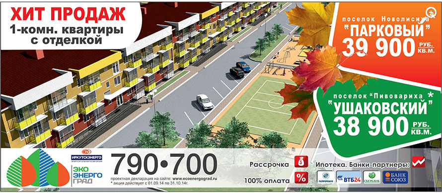 Хит продаж! ЭкоЭнергоГрад предлагает 1-комнатные квартиры с отделкой в поселке "Парковый" и "Ушаковский"