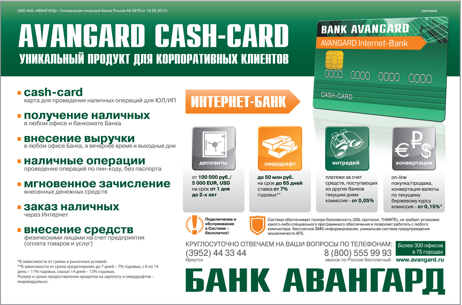 ОАО АКБ «АВАНГАРД» предлагает уникальный продукт для корпоративных клиентов AVANGARD CASH-CARD