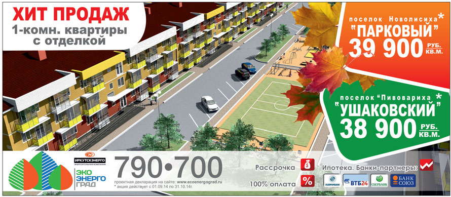 1-комнатные квартиры в поселках «Парковый» и «Ушаковский»