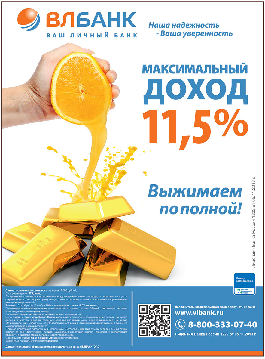 ВЛБАНК предлагает вклад "Максимальный доход" со ставкой 11,5% годовых