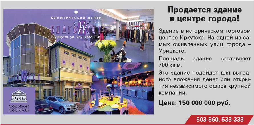 ПАО «РОСТЕЛЕКОМ» РЕАЛИЗУЕТ НЕДВИЖИМОСТЬ в Иркутской области [12.05.2023]