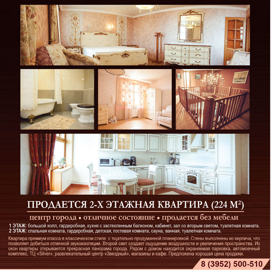 Продается 2-х этажная квартира премиум класса! г.Иркутск, центр города, отличное состояние, продается без мебели.