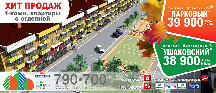 "ЭкоЭнергоГрад" предлагает 1-комнатные квартиры в поселках «Парковый» и «Ушаковский»