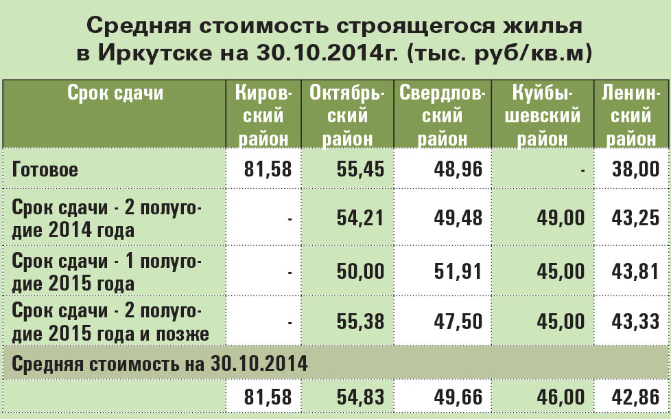 Средняя стоимость строящегося жилья в Иркутске на 30.10.2014г. (тыс. руб/кв.м) по данным REALTY.IRK.RU