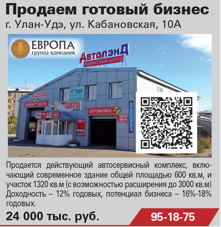 Продается действующий автосервисный комплекс. г. Улан-Удэ, ул. Кабановская, 10А. Доходность – 12% годовых, потенциал бизнеса – 16%-18% годовых.