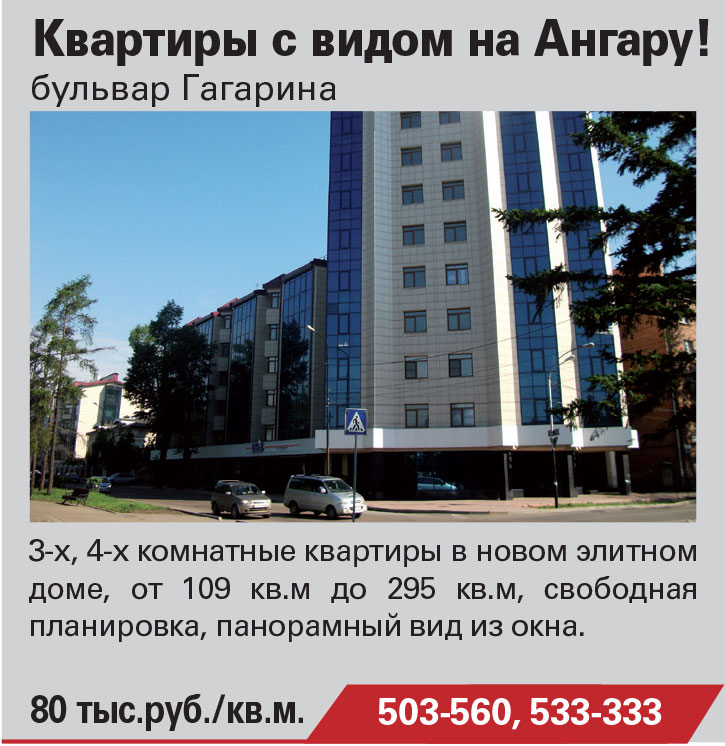 3-х, 4-х комнатные квартиры в новом элитном доме с видом на Ангару! г.Иркутск, бульвар Гагарина