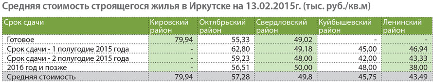 Средняя стоимость строящегося жилья в Иркутске на 13.02.2015г. (тыс. руб./кв.м)