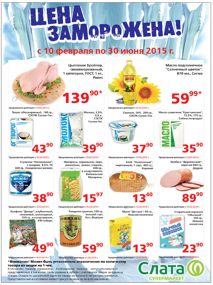 Супер маркет «Слата». Мы заморозили цены на некоторые виды товара!