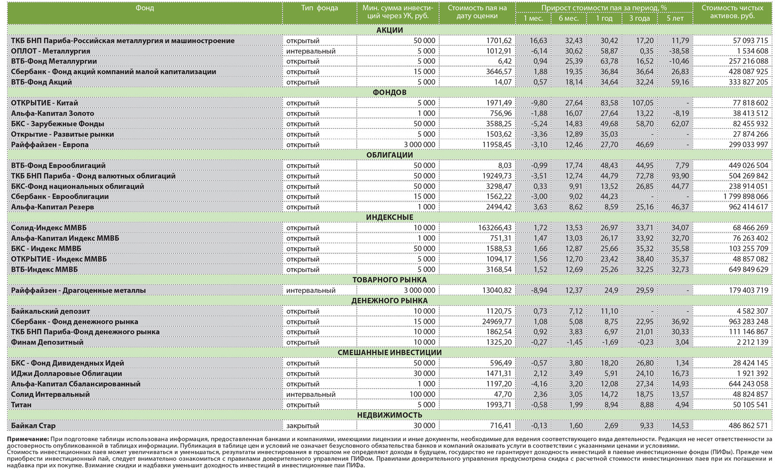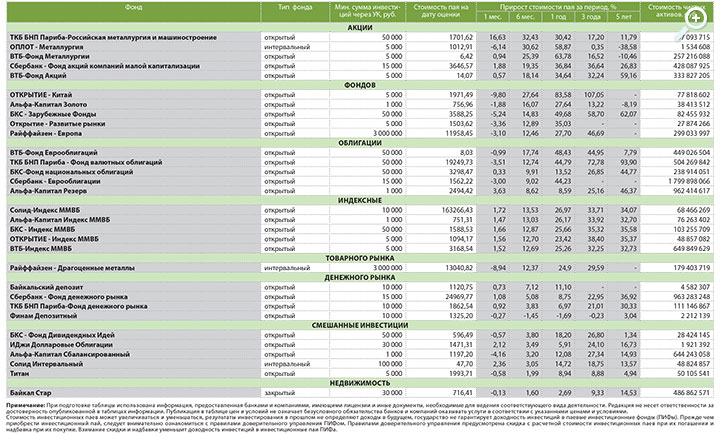 Котировки паев ПИФов в Иркутске 18 мая 2015 года (выборочно)