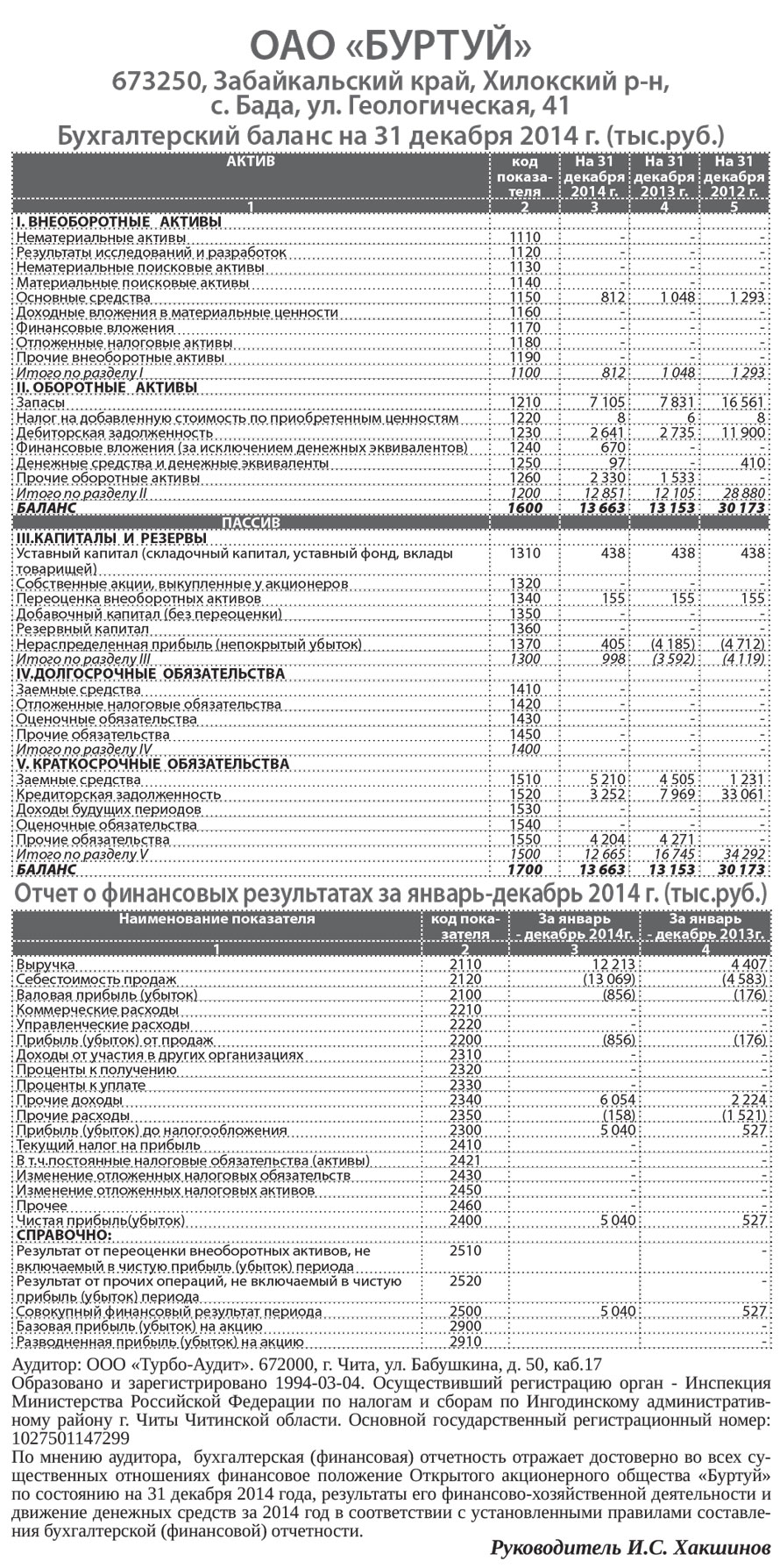 ОАО «БУРТУЙ». Бухгалтерский баланс на 31 декабря 2014 г. (тыс.руб.)