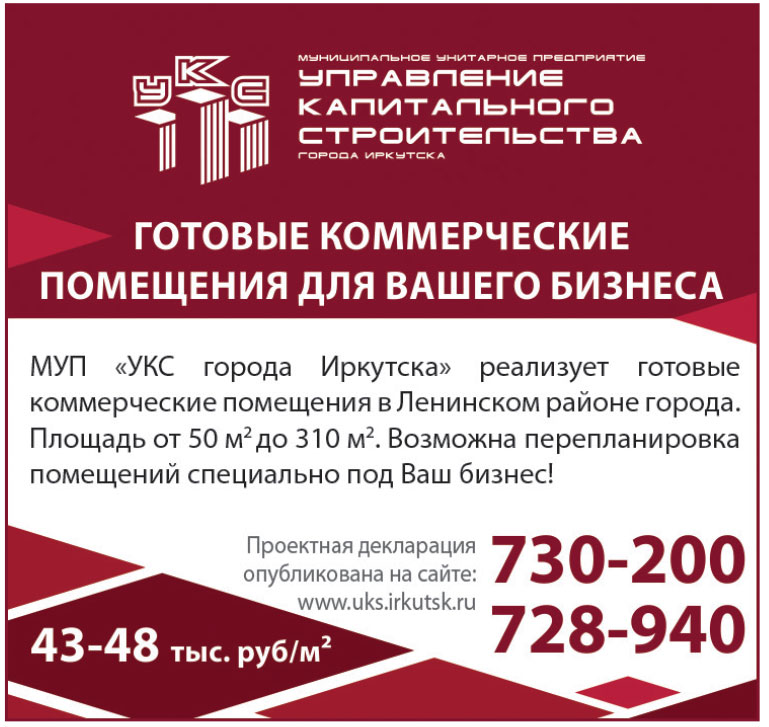 МУП «УКС города Иркутска» реализует готовые коммерческие помещения в Ленинском районе города