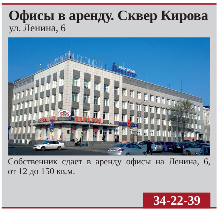 Сдаем офисы в аренду! г.Иркутск, Сквер Кирова, ул. Ленина, 6