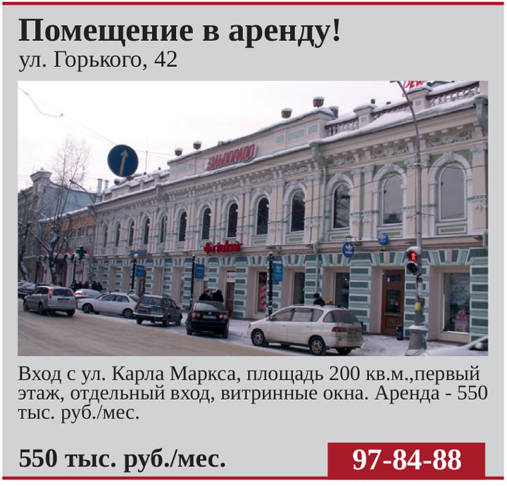 Помещение в аренду! г.Иркутск, ул. Горького, 42