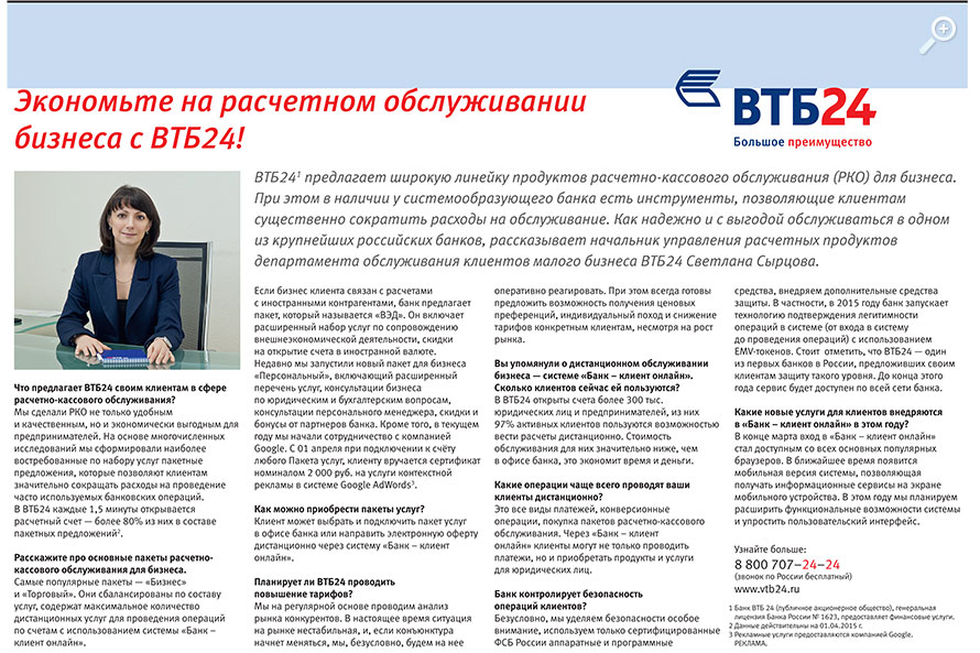 Экономьте на расчетном обслуживании бизнеса с ВТБ24!