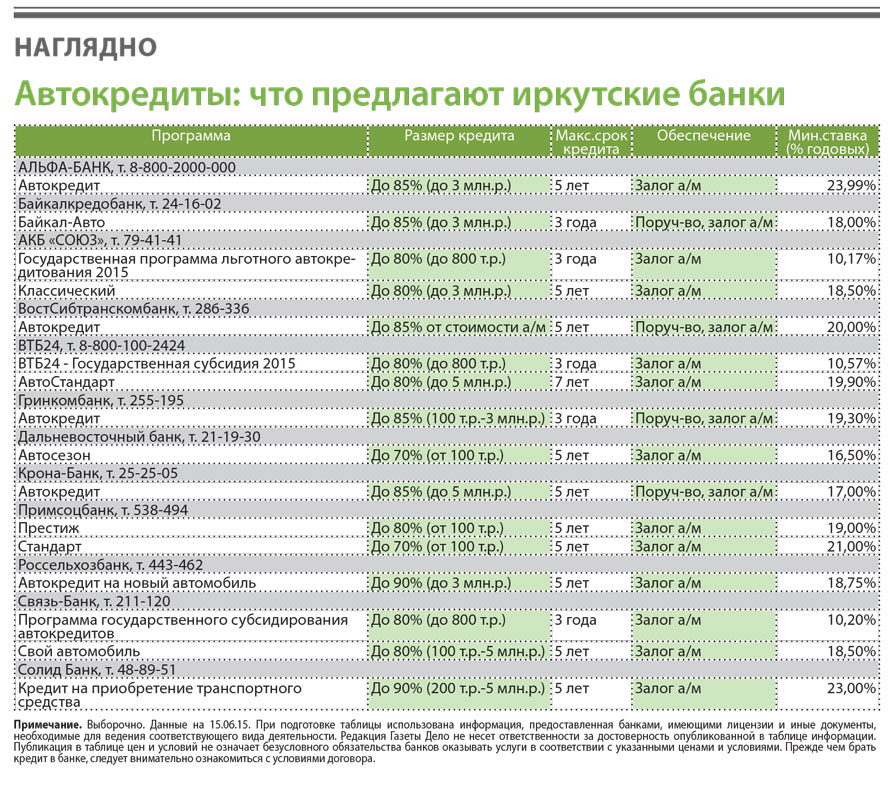 Как сообщили Газете Дело в банке ВТБ24, запуск программы вызвал повышение спроса на автокредиты в Иркутске. Так, если в первом квартале 2015 года банком было выдано 150 кредитов на сумму 87,5 млн рублей, то за апрель и май – 176 кредитов на общую сумму 89 млн рублей.