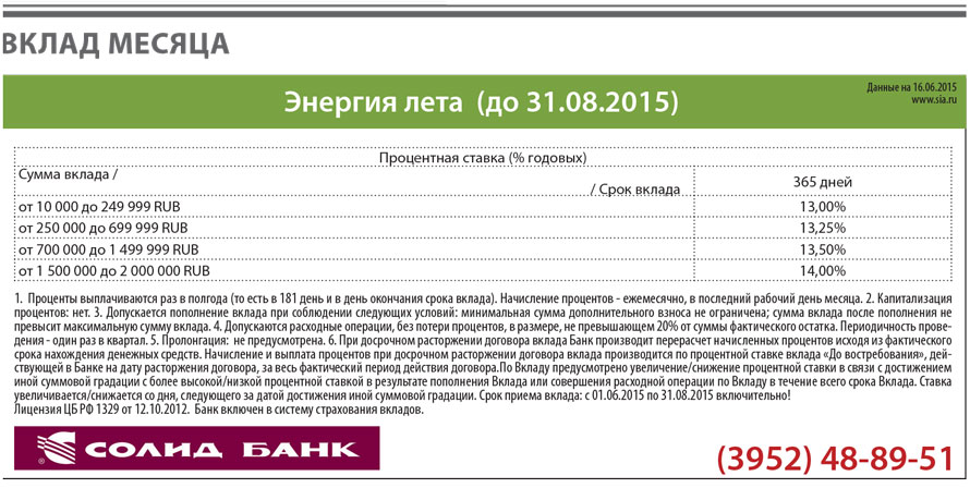 Вклад месяца: "Энергия лета" от Солид Банка