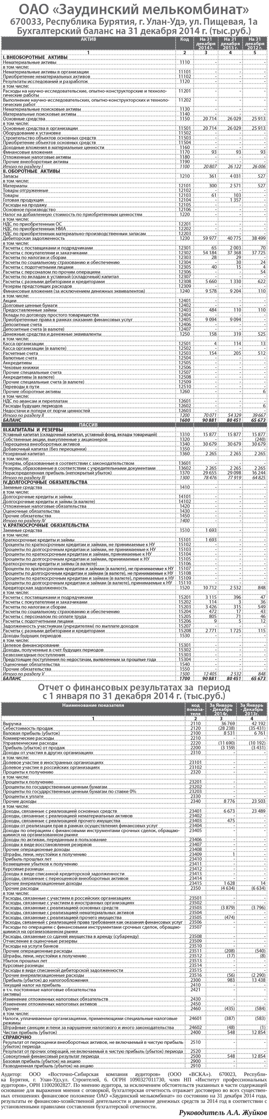 ОАО «Заудинский мелькомбинат» Бухгалтерский баланс на 31 декабря 2014 г. (тыс.руб.)