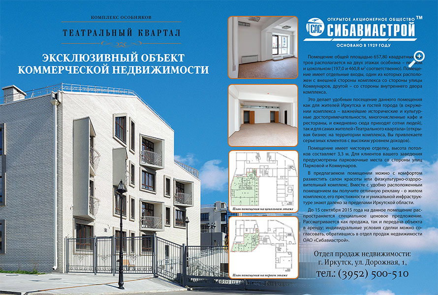 ОАО Сибавиастрой предлагает эксклюзивный объект коммерческой недвижимости в комплексе особняков «Театральный квартал»