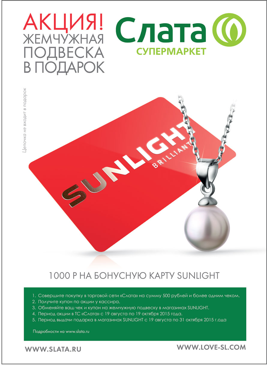 Акция в сети супермаркетов «СЛАТА»! Жемчужная подвеска в подарок