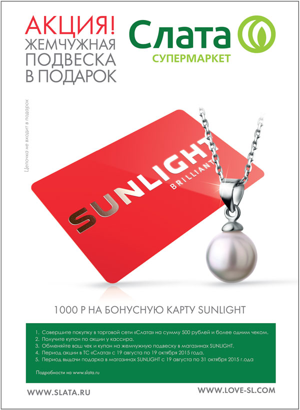 Акция от супермаркета Слата! Жемчужная подвеска в подарок