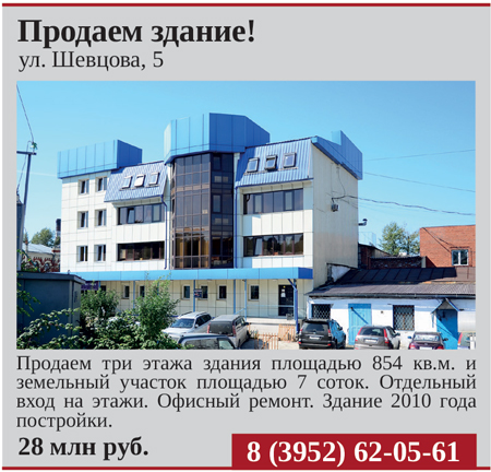 Продаем здание! г.Иркутск, ул. Шевцова, 5.