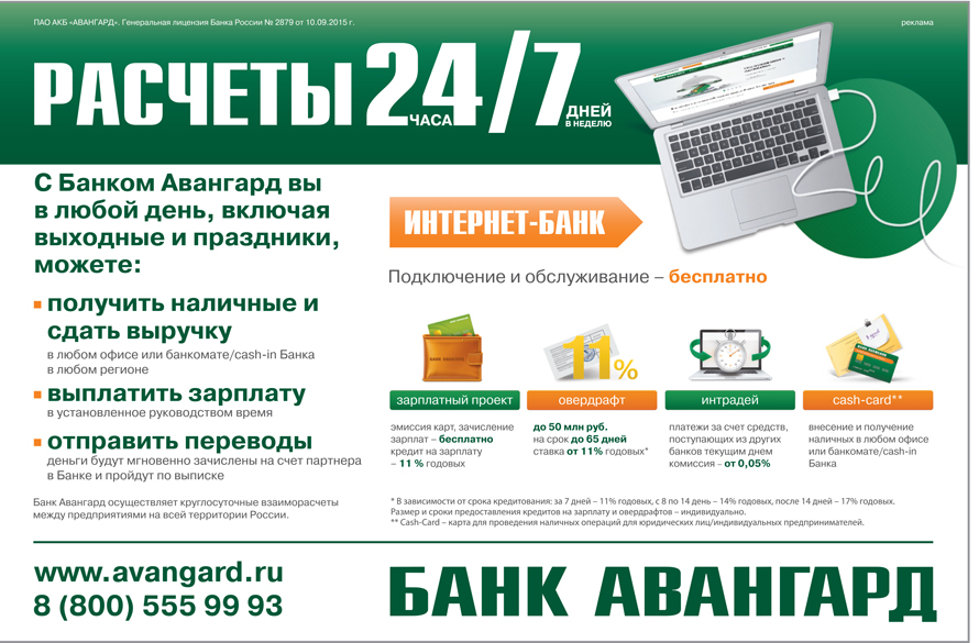 Расчеты 24 часа / 7 дней в неделю. Интернет-банк АВАНГРАД