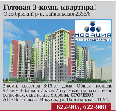 Готовая 3-комн. квартира! г.Иркутск, Октябрьский р-н, Байкальская 236б/6
