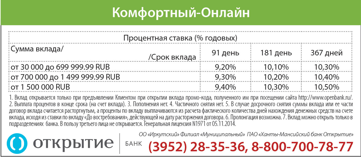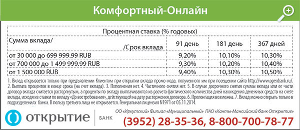 Вклад месяца. «Комфортный-онлайн» от банка Открытие»