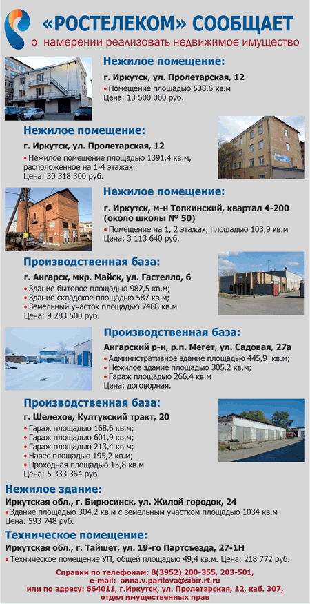 «Ростелеком» сообщает о намерении реализовать недвижимое имущество
