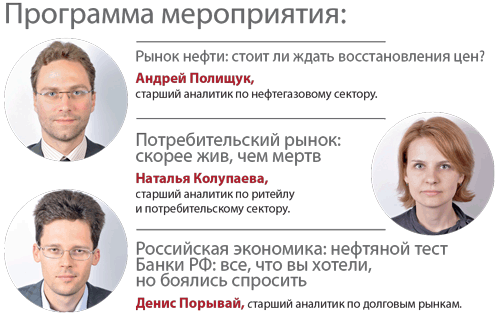 В качестве экспертов приглашены ведущие аналитики Райффайзенбанка. Они расскажут о факторах, которые в 2016 году влияют и будут влиять на курсы валют и процентные ставки, о том, какие существуют риски, как минимизировать их воздействие на ваш бизнес. Специалисты дадут оценку перспективам потребительского сектора в России и будущему розничной торговли.