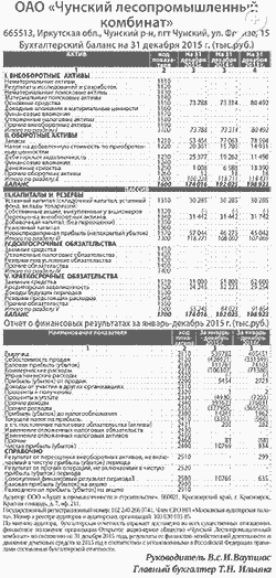 ОАО «Чунский лесопромышленный комбинат». Бухгалтерский баланс на 31 декабря 2015 г. (тыс.руб.)