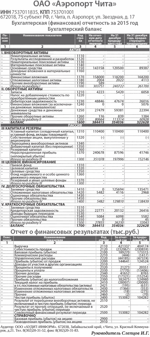 ОАО «Аэропорт Чита» Бухгалтерская (финансовая) отчетность за 2015 год. Бухгалтерский баланс