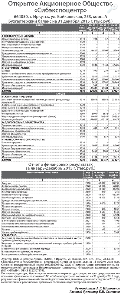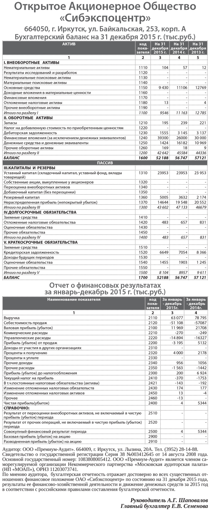 Открытое Акционерное Общество «Сибэкспоцентр» Бухгалтерский баланс на 31 декабря 2015 г. (тыс.руб.)
